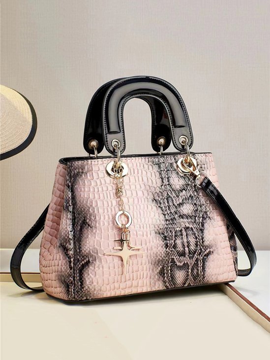 Shiny Crocodile Faux Leather Urban Commuter Handbag
