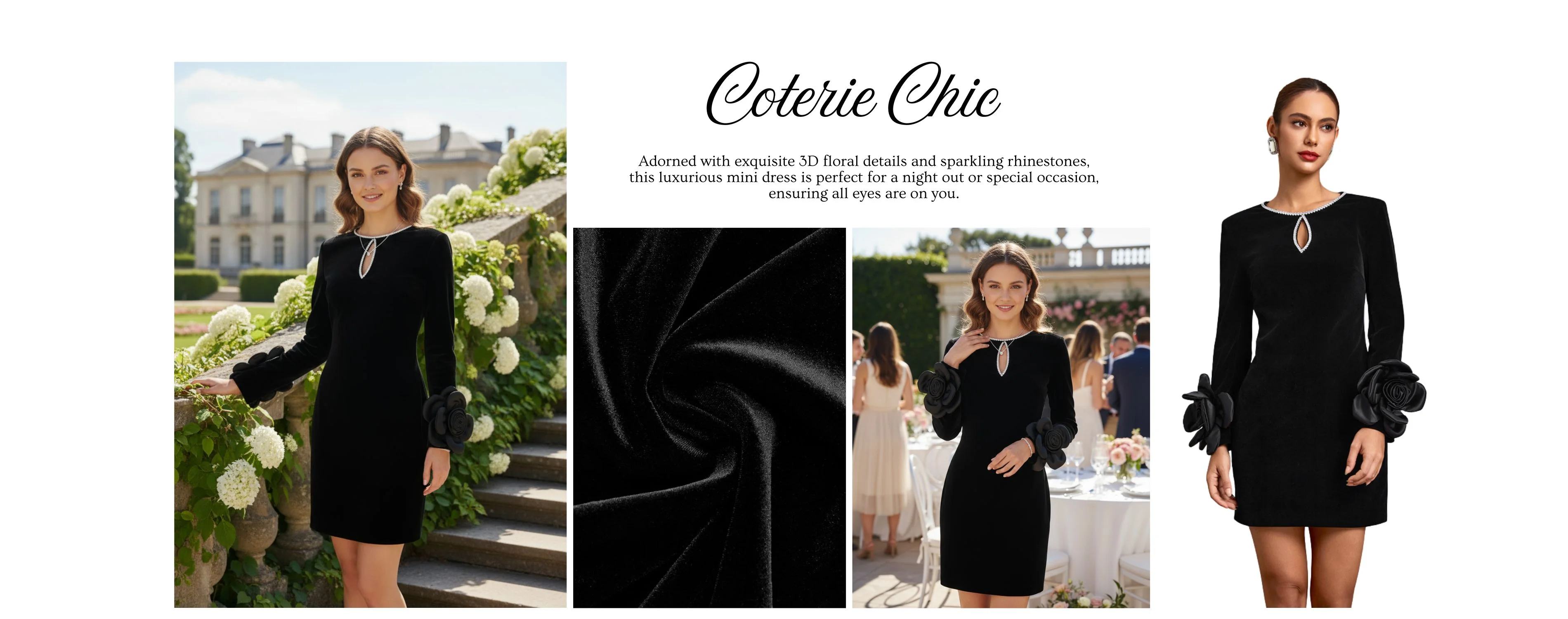 Adorned with exquisite 3D floral details and sparkling rhinestones, this luxurious mini dress is perfect for a night out or special occasion, ensuring all eyes are on you.