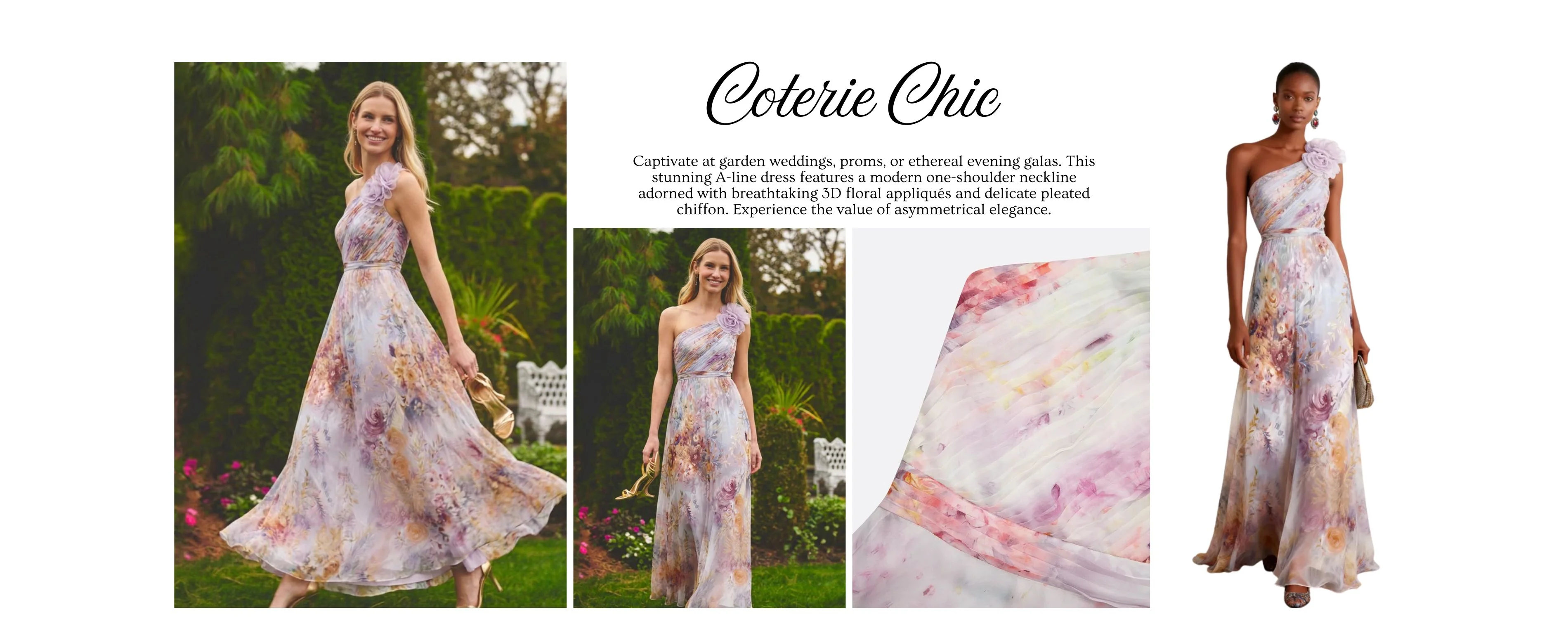 Captivate at garden weddings, proms, or ethereal evening galas. This stunning A-line dress features a modern one-shoulder neckline adorned with breathtaking 3D floral appliqués and delicate pleated chiffon. Experience the value of asymmetrical elegance.