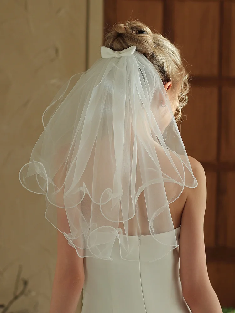 Short Bow-embroidered Double-layered Rolled-edge Bridal Veil