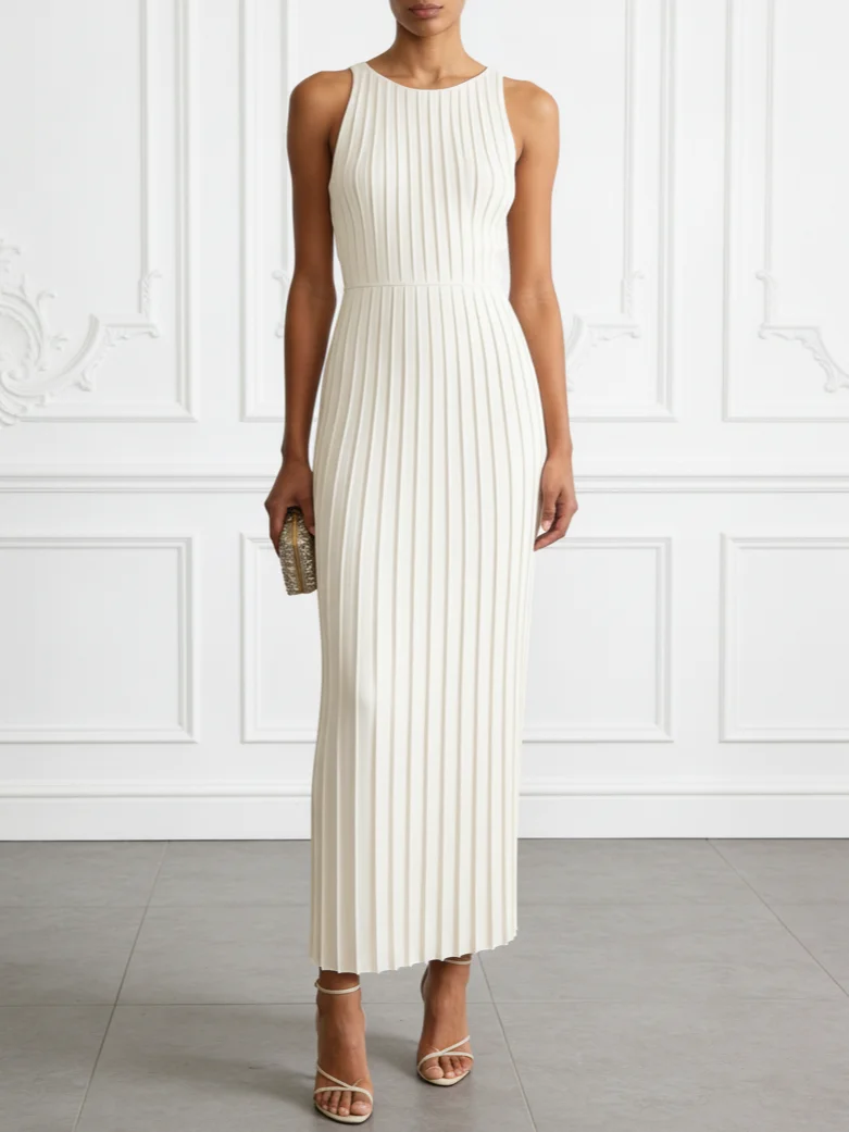 White Classic Crew Neck Sleeveless Sheath Maxi Dress