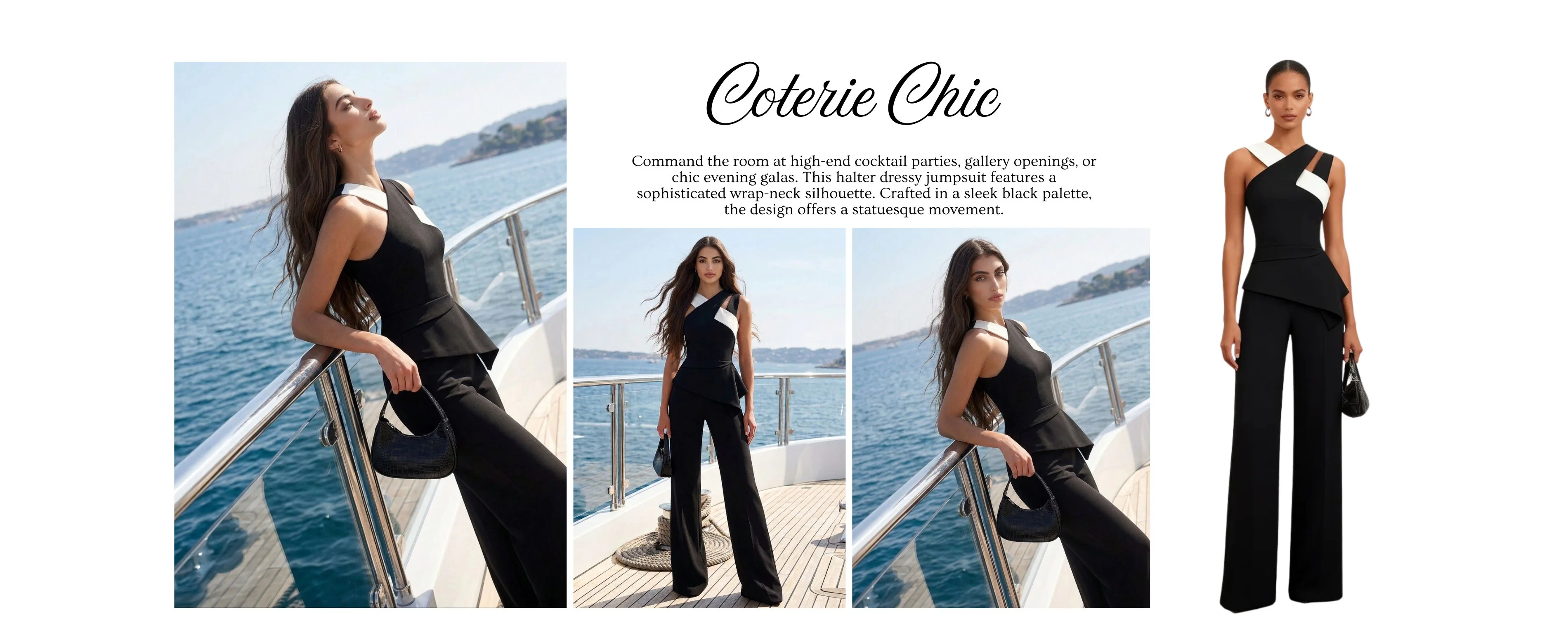 Command the room at high-end cocktail parties, gallery openings, or chic evening galas. This halter dressy jumpsuit features a sophisticated wrap-neck silhouette. Crafted in a sleek black palette, the design offers a statuesque movement.