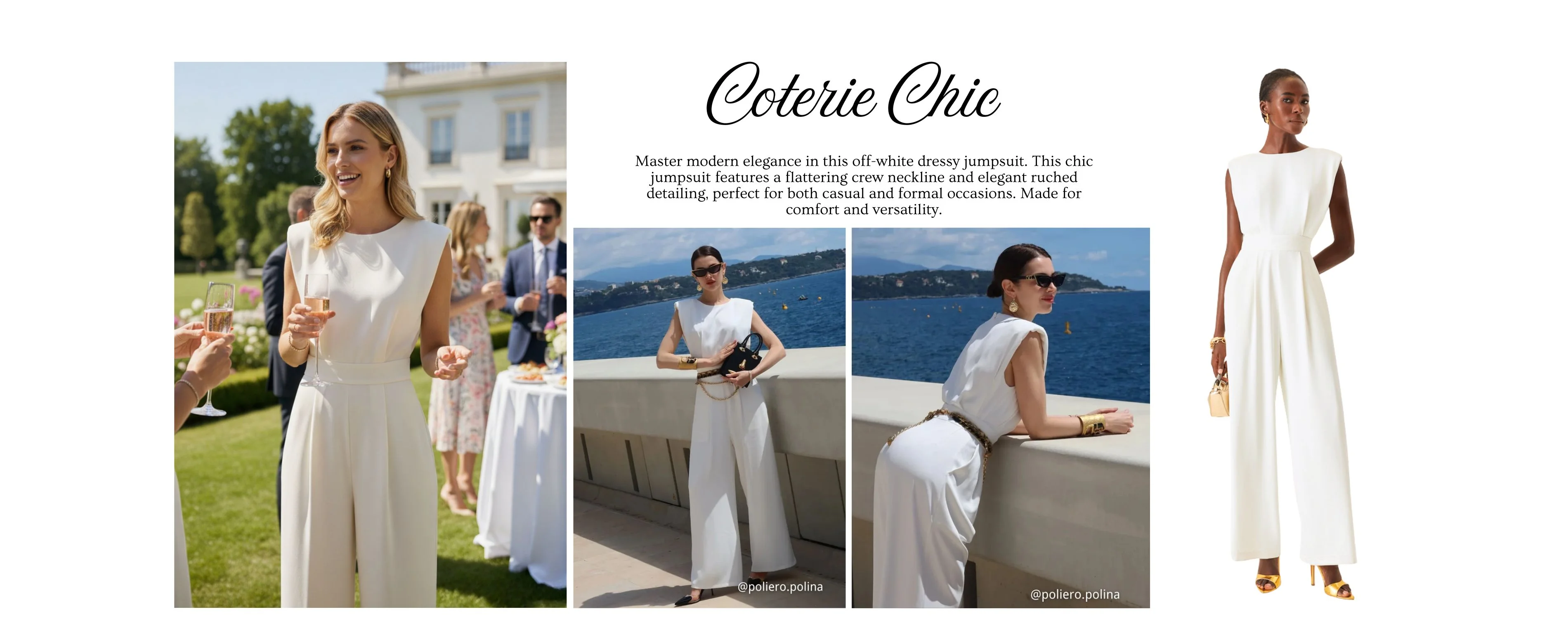 Master modern elegance in this off-white dressy jumpsuit. This chic jumpsuit features a flattering crew neckline and elegant ruched detailing, perfect for both casual and formal occasions. Made for comfort and versatility.