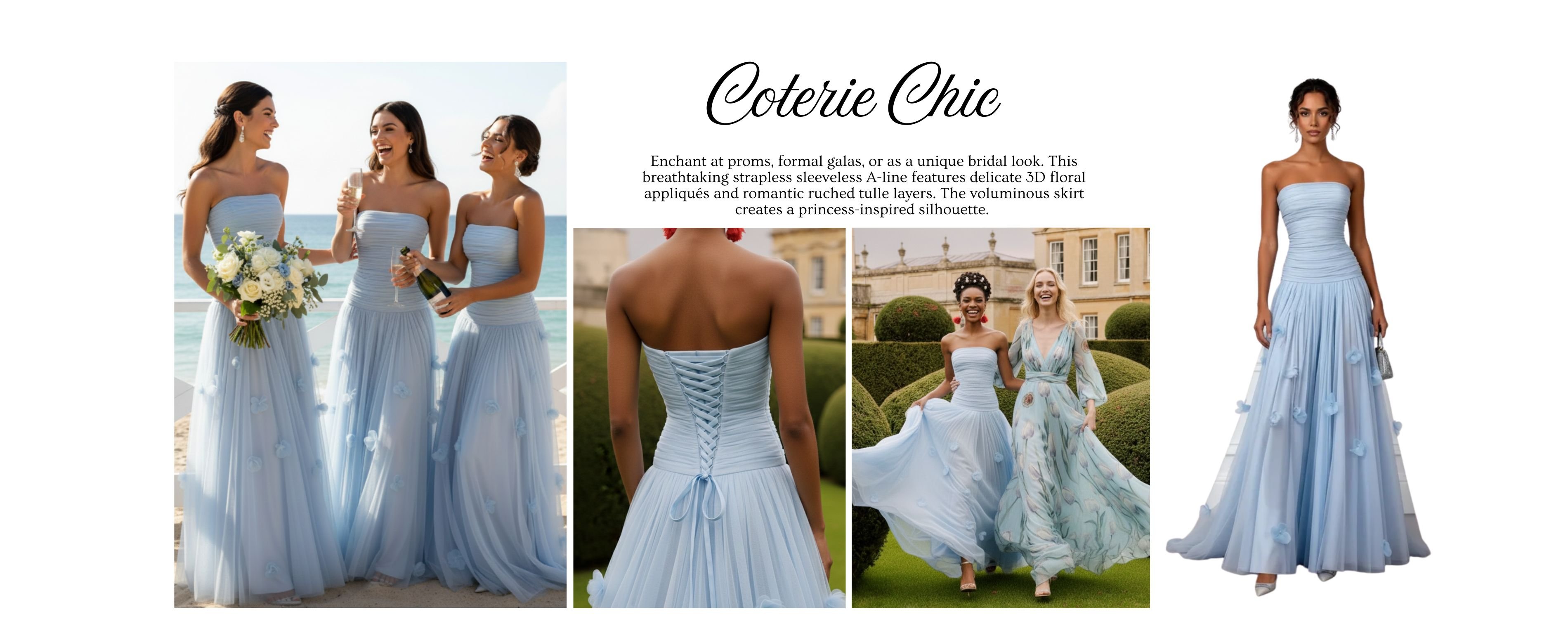 Enchant at proms, formal galas, or as a unique bridal look. This breathtaking strapless sleeveless A-line features delicate 3D floral appliqués and romantic ruched tulle layers. The voluminous skirt creates a princess-inspired silhouette.