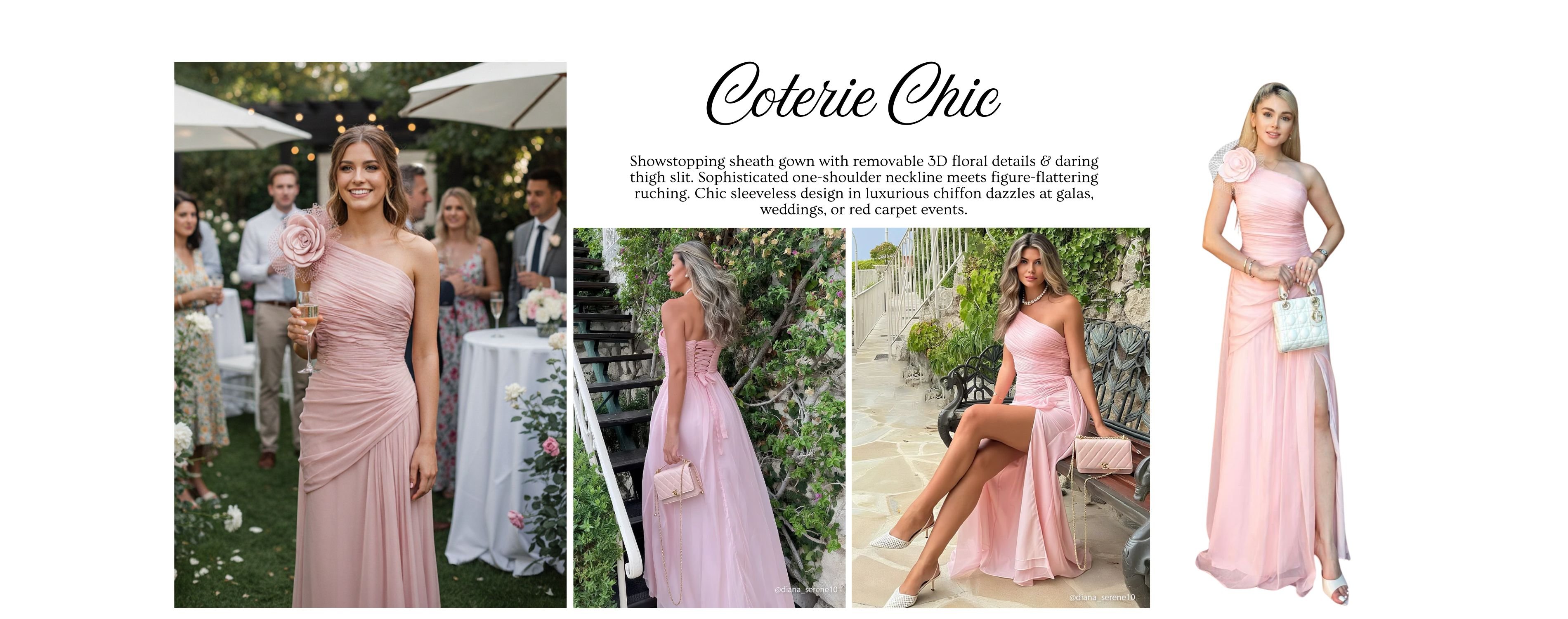 Showstopping sheath gown with 3D floral details & daring thigh slit. Sophisticated one-shoulder neckline meets figure-flattering ruching. Chic sleeveless design in luxurious chiffon dazzles at galas, weddings, or red carpet events.