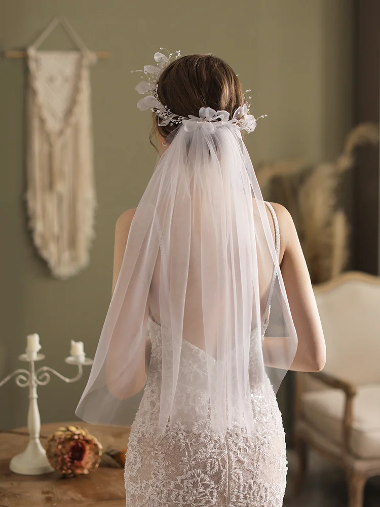 Romantic And Light Forest-style Beaded Floral Wreath For Brides Bridal Hair Comb Style Veil