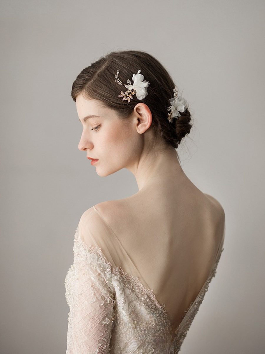 Super Fairy-like Flower Pearl Diamond Bridal Hairpin Wedding Dress Updo Hair Accessory