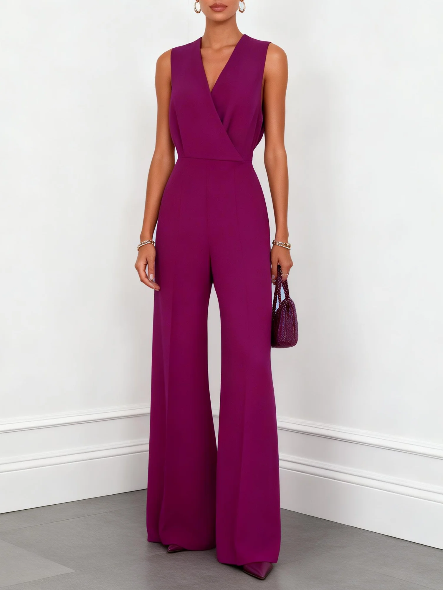 Shine at high-end spring galas, sophisticated cocktail receptions, or prestigious evening ceremonies. This dressy jumpsuit features a sculpted bodice and flowing wide-leg trousers. Crafted in a premium purple fabric, the design offers a polished movement.